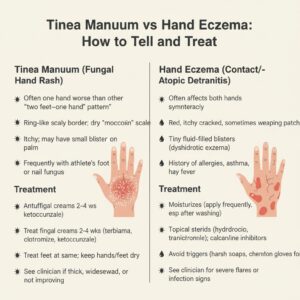 Guide to Mastering Your Sleep Cycle Lip Licker’s Dermatitis – Quick Fixes for Kids and Adults Tinea Manuum (Fungal Hand Rash) vs Eczema – How to Tell and Treat Dyshidrotic Eczema (Pompholyx) – Itchy Hand/Foot Blisters Chilblains (Pernio) – Cold-Triggered Toe and Finger Sores Hyperhidrosis (Excessive Sweating) – Practical Treatment Ladder Maskne (Mask-Related Acne) – Quick Fixes and Prevention Scalp Folliculitis vs Dandruff – Itchy Bumps vs Flakes Chafing and Intertrigo in Athletes – Fast Fixes and Prevention Pityriasis Alba vs Vitiligo in Kids – Spot the Difference Cold Weather Skin Care – Eczema, Chapped Hands, and Lips Tinea Versicolor Recurrence – Prevention and Treatment Refresh Page1 Page2 Page3 Page4 Page5